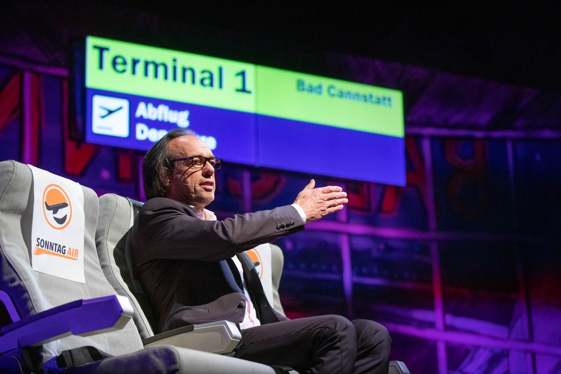 Nach der geschmacklich vielfältigen Verköstigung durch hervorragende Caterer (Firma Leykauf, Hoercher’s Biohof, Rotes Schloss Jagsthausen, Firma Aries) sowie den Getränkeservice durch den hiesigen Tischtennisclub, welche die Besucher mit kulinarischen Köstlichkeiten versorgten, folgte der Hauptprogrammpunkt in Form des renommierten Kabarettisten Christoph Sonntag, der die zahlreichen Besucher mit seinem humoristischen Bühnenprogramm „Worldwaid“ zum Beben brachte. Unter tosendem Beifall beendete er schließlich seine Show, die Besucher waren beglückt und mitgerissen von der positiven