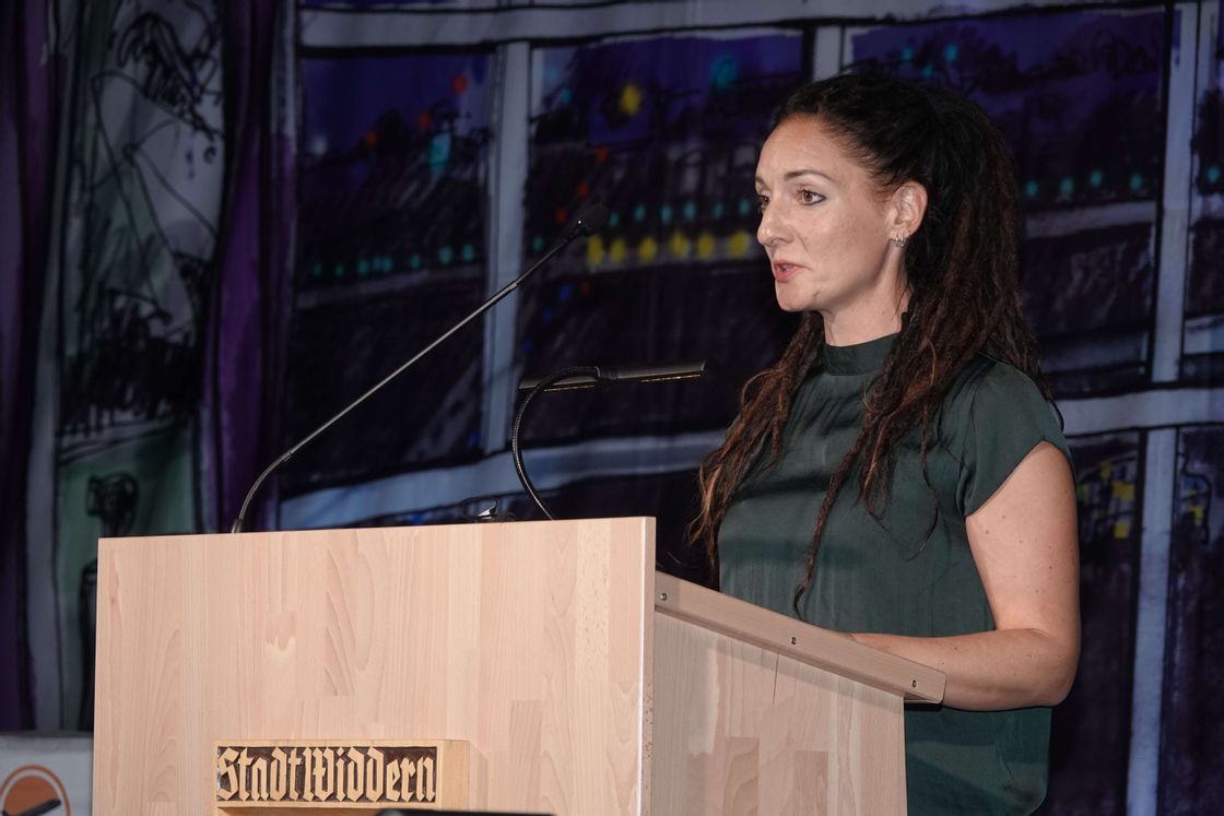 Im Anschluss warb die Kultur- und Tourismusreferentin Widderns, Claudia Rauth, welche sich zukünftig um die Entwicklung eines vielfältigen Kulturprogramms kümmern wird, in ihrer inspirierenden und emotionalen Rede für Begeisterung und Mut. Sie möchte Widdern mittels des neuen Potentials durch die Halle zu mehr kultureller Vielfalt, Wachstum und Vitalisierung des ganzen Orts verhelfen und rief ausdrücklich zu Kooperation, Netzwerkbildung und regem Austausch auf. Sie appellierte deutlich an ihre Zuhörer, dass jeder, ob Privatmann, Firmen, Schulen oder sonstige Veranstalter, einen wertvollen Beitrag zu einer bunten Zukunft Widderns und dieser neuen Kulturhalle leisten können und dass sie sich sehr auf Zusammenarbeit jedweder Art freut.
