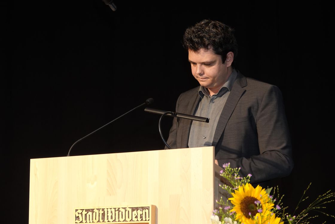 Frisch gestärkt lud Herr Bürgermeister Kevin Kopf seine BürgerInnen erstmals am Freitag in die in neuem Glanz erstrahlende Halle ein. Nach seinen grüßenden Eröffnungsworten sorgten der Widderner Liederkranz sowie der Posaunenchor für qualitätvolle musikalische Unterhaltung und lieferten damit einen anschaulichen Eindruck davon, wie qualitativ ausgezeichnet sich zukünftig akustische Darbietungen vom Zuhörer dank modernster Tontechnik in dem neuen Hauptsaal präsentieren können.